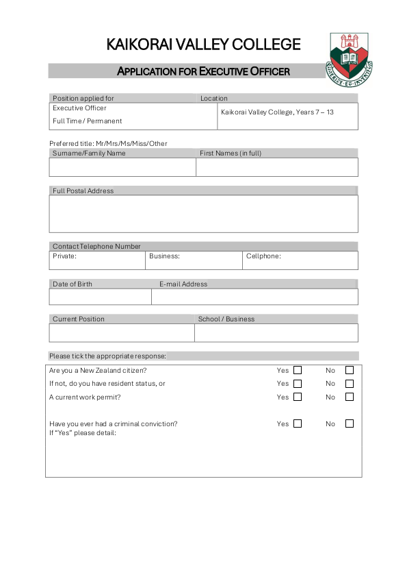 Please apply by completing the application form and submitting it, along with your CV and cover letter, to principal@kvc.school.nz.