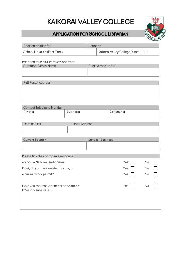 We are looking to appoint an experienced and enthusiastic Librarian to join our Kaikorai Valley College team (Years 7-13 ). This is an exciting opportunity for a motivated professional passionate about fostering a love of reading among young adults, supporting information literacy, and creating an engaging learning environment for students and staff.